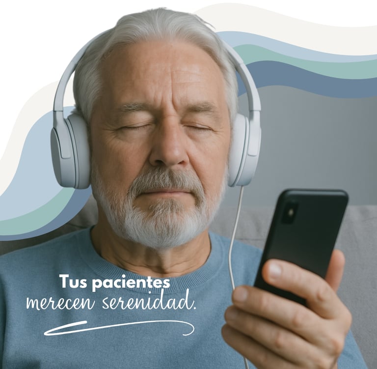 Cada sesión está diseñada para relajar cuerpo y mente, optimizando la respuesta fisiológica y emocional del paciente. Inclúyalas como parte de su protocolo preoperatorio y eleve la calidad de su atención médica.